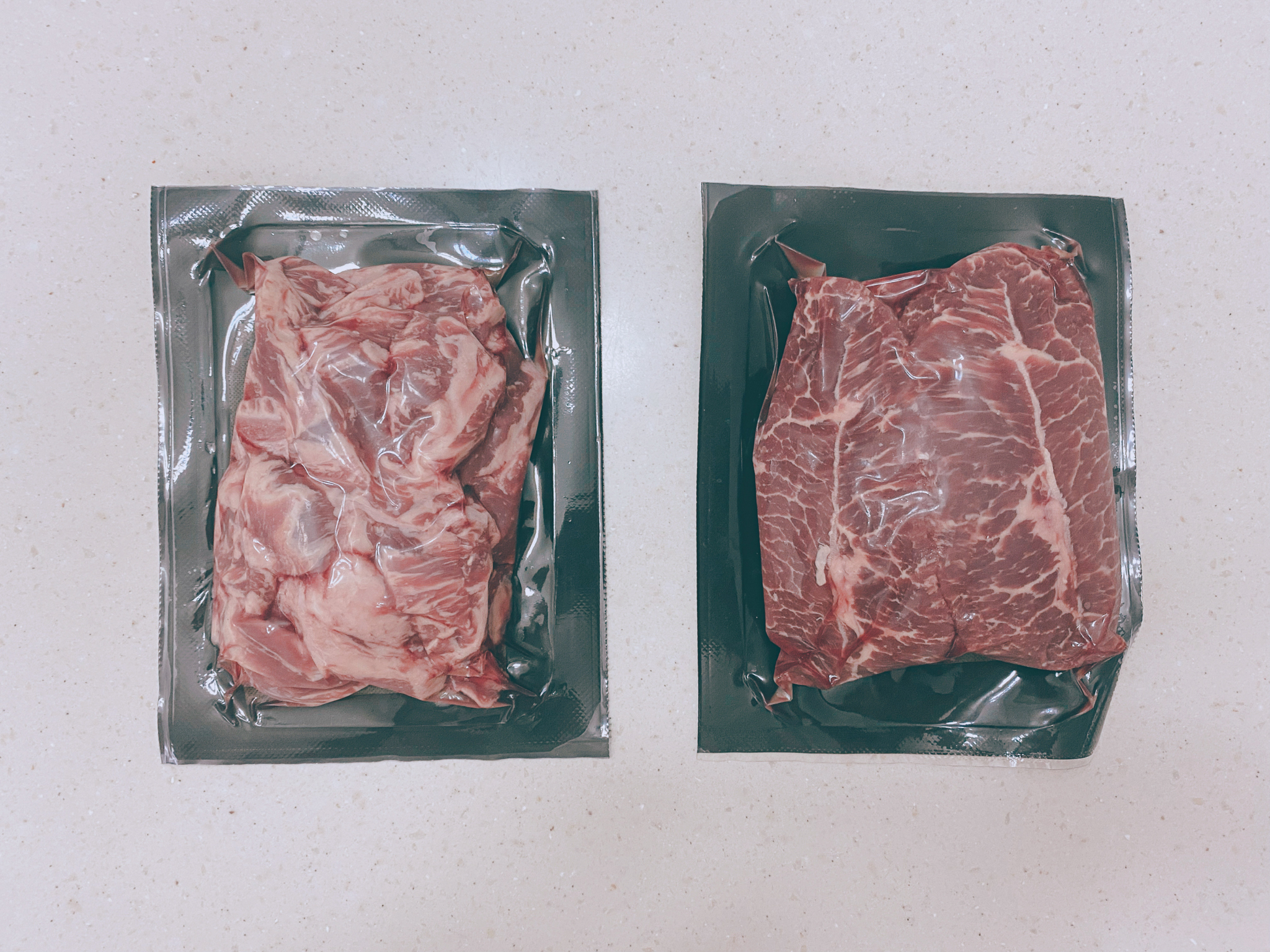 초이스 갈비살 400g + 초이스 두툼한 부채살 400g이에요!